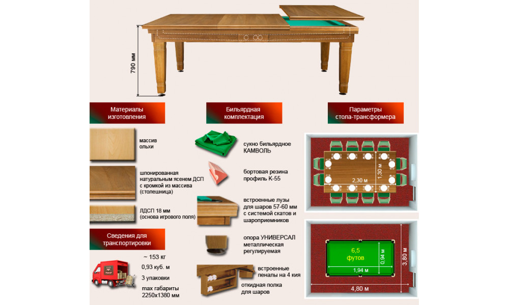 Преимущества обеденно-бильярдного стола «Эльзас-2»: